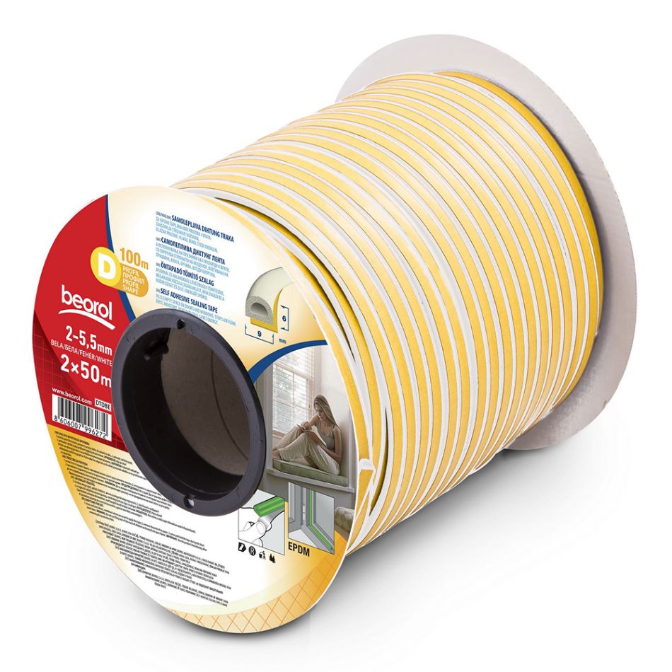 Diht Traka Guma za Vrata i Prozore Bela Jednostruko 1m